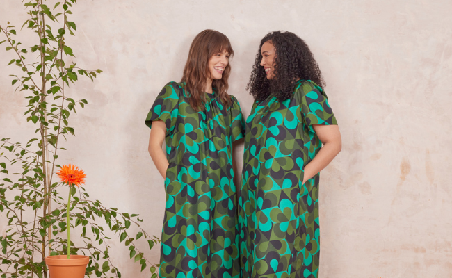 This season’s Sixties Stem print is a rich and playful Orla motif. With soft violet and olive green hues, the sixties stem features our classic stem design paired with a central round ‘bud’. A structured pattern that makes an impact whilst pairing well with your autumnal wardrobe.